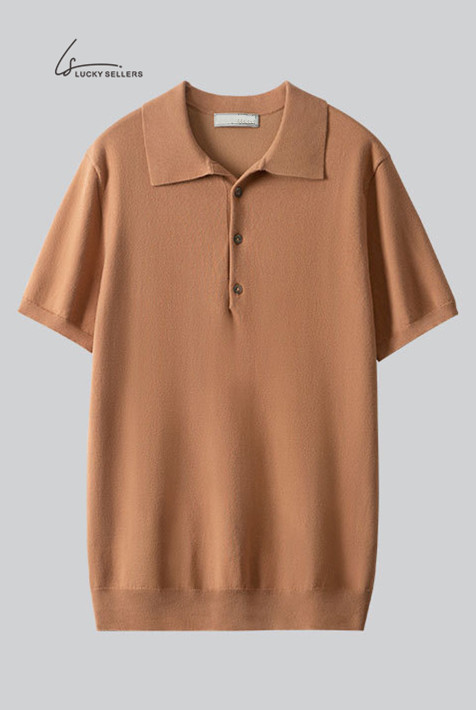 100% Cotton Thin Short Sleeve Button Lapel Polo Shirt Knitted Business Casual Slim Fit Men's T-shirt