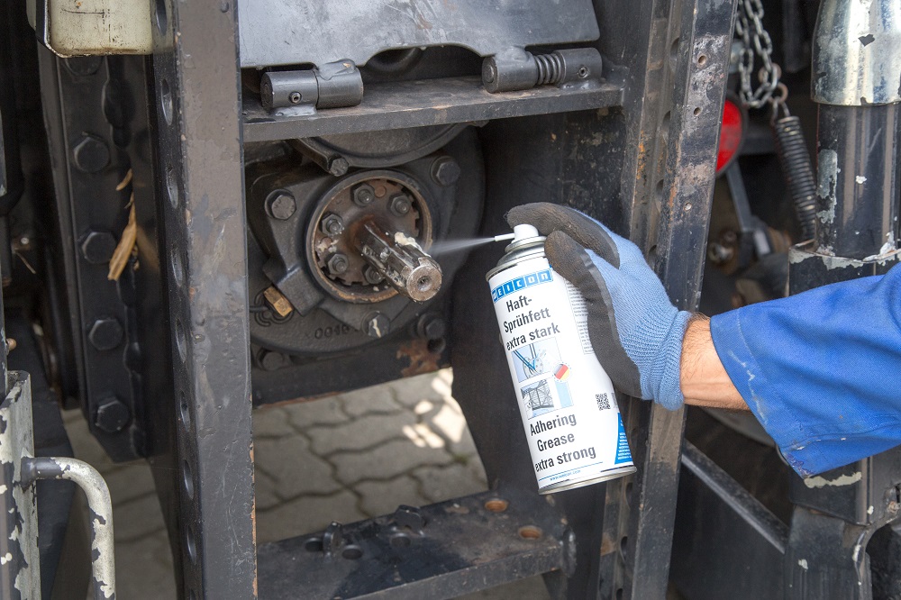 APPLICATION: Adhesive spray grease extra strong can also be used for roller and plain bearings in mixed friction operation, joints, levers, sliding guides, spindles, spline shafts, open gears, worm gears, chains and wire ropes. It is suitable for all sliding speeds permissible for grease lubrication.