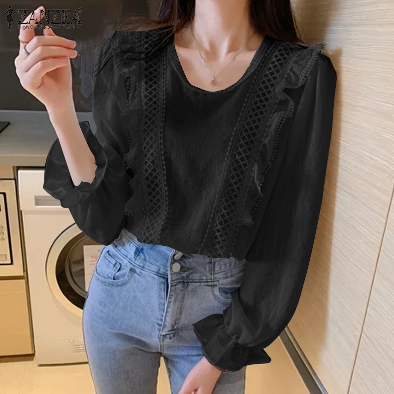 [Clearance Sale]ZANZEA Clearance Sale Womens Puff Long Sleeve Ruffles Shirt Office Cargo Loose Tops Blouse CLE
