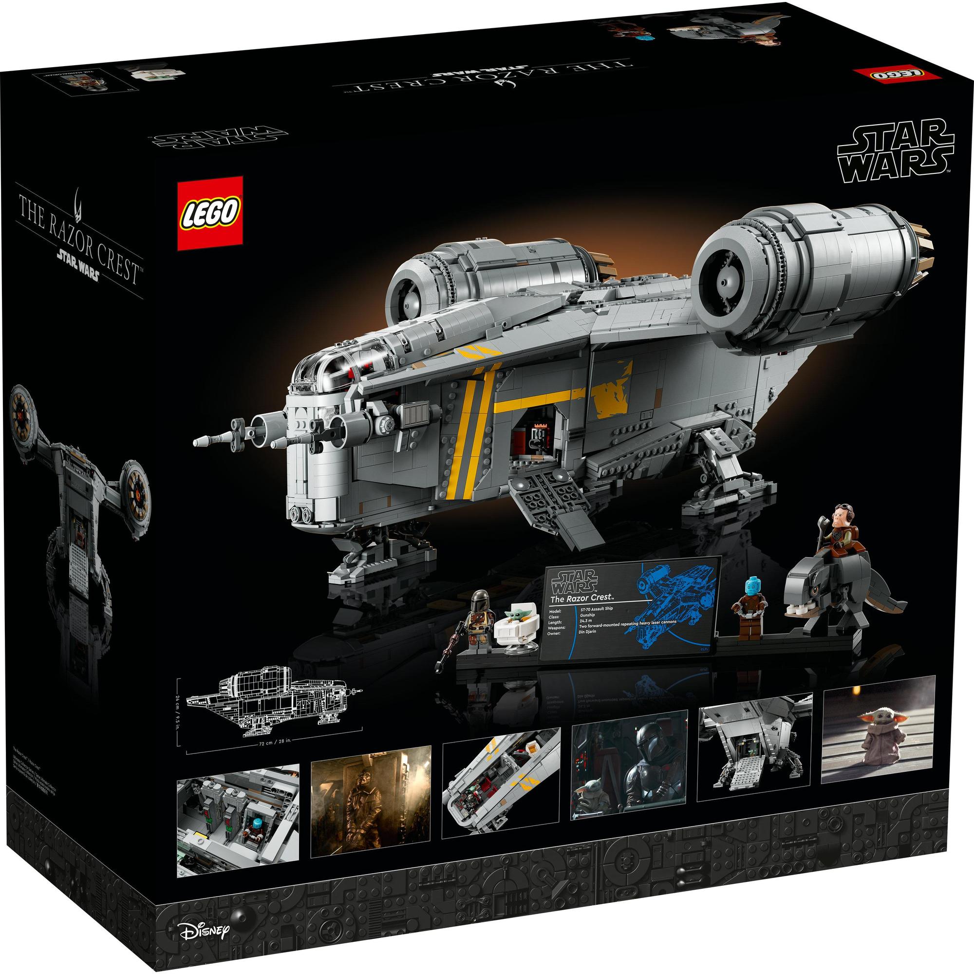 The set includes The Mandalorian, The Mythrol and Kuiil LEGO® minifigures, a Grogu LEGO figure in a pram, and a buildable Blurrg LEGO figure that can fit inside The Razor Crest’s cargo compartment.