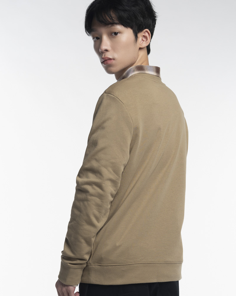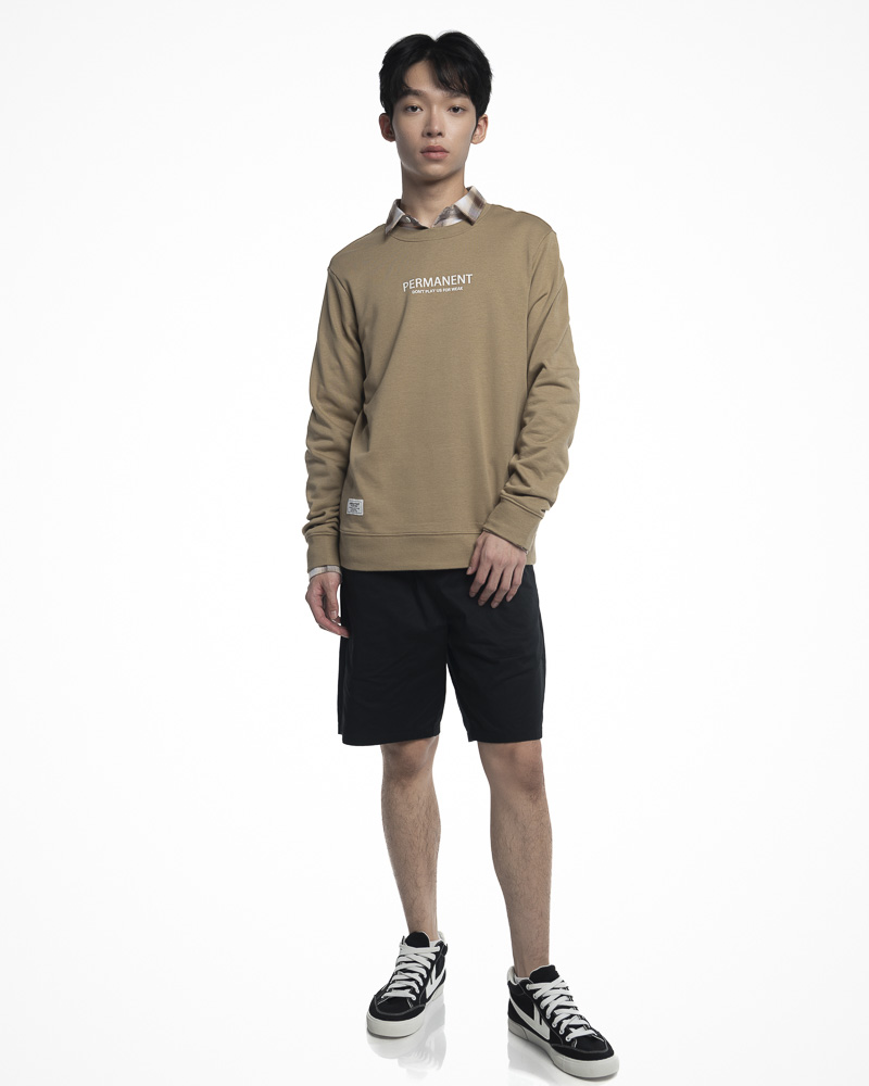 Regular Solid Coloured Long Sleeve Sweatshirt with Round Neck. Comes with Permanent Slogan at the front. Made of cotton.