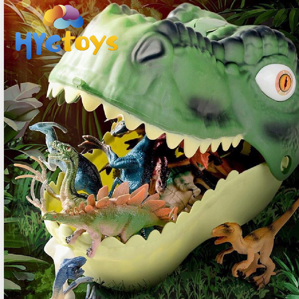 HYG Dinosaur head cover toy 16PCS Large Dinosaur Head Storage Toy Jurassic World Tyrannosaurus Rex Model Set Scene Can be a storage box kid‘s toy boy and girl gift