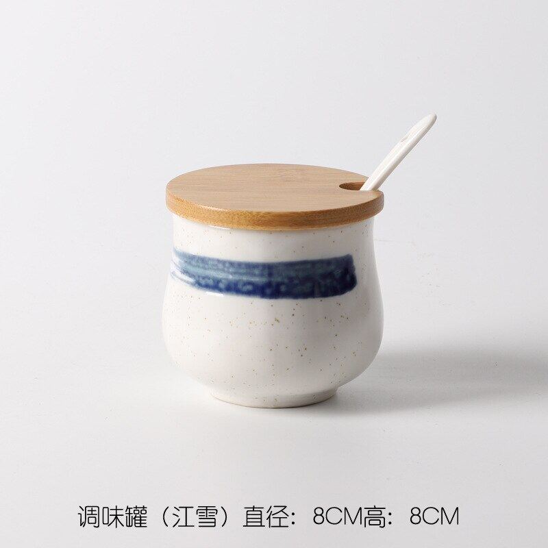 Creative Japanese-Style Ceramic Seasoning Jar Set Restaurant With Lid Spoon Salt Pepper MSG Jar Home Kitchen Seasoning Bottle