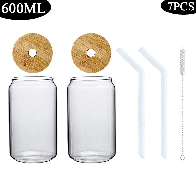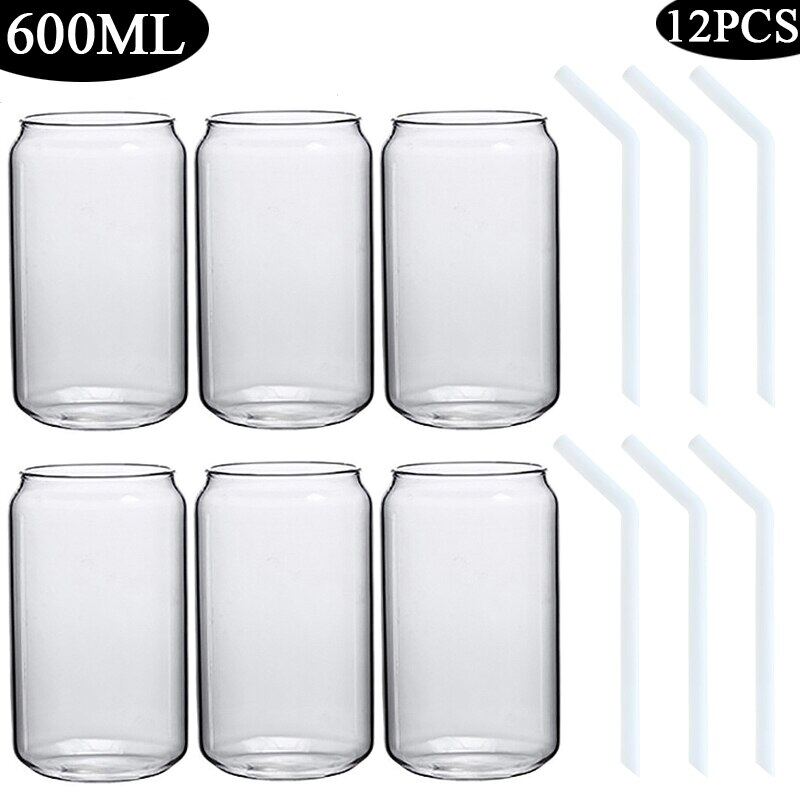420/600ML 2-6PCS Transparent Glass Cup With Lid Straw Bubble Tea Cup Juice Coffee Beer Can Milk Mocha Breakfast Mug Drinkware
